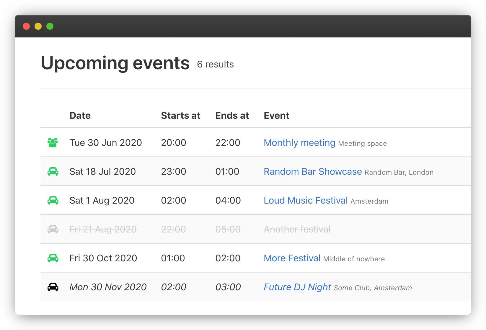 All your events in one overview. Schedule your shows, meetings and practice sessions with ease.